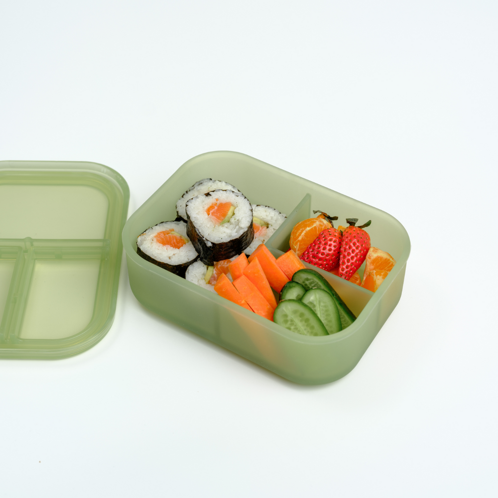 The 3 Section Bento Box, crafted from premium jelly silicone, is an exciting and functional solution for your food storage and preparation needs.The 3-section design allows you to keep snacks neatly separated, while the translucent silicone lets you easily see the contents inside. Portable, shatter-proof, and leak-resistant, this bento box is also suitable for both the freezer and microwave.