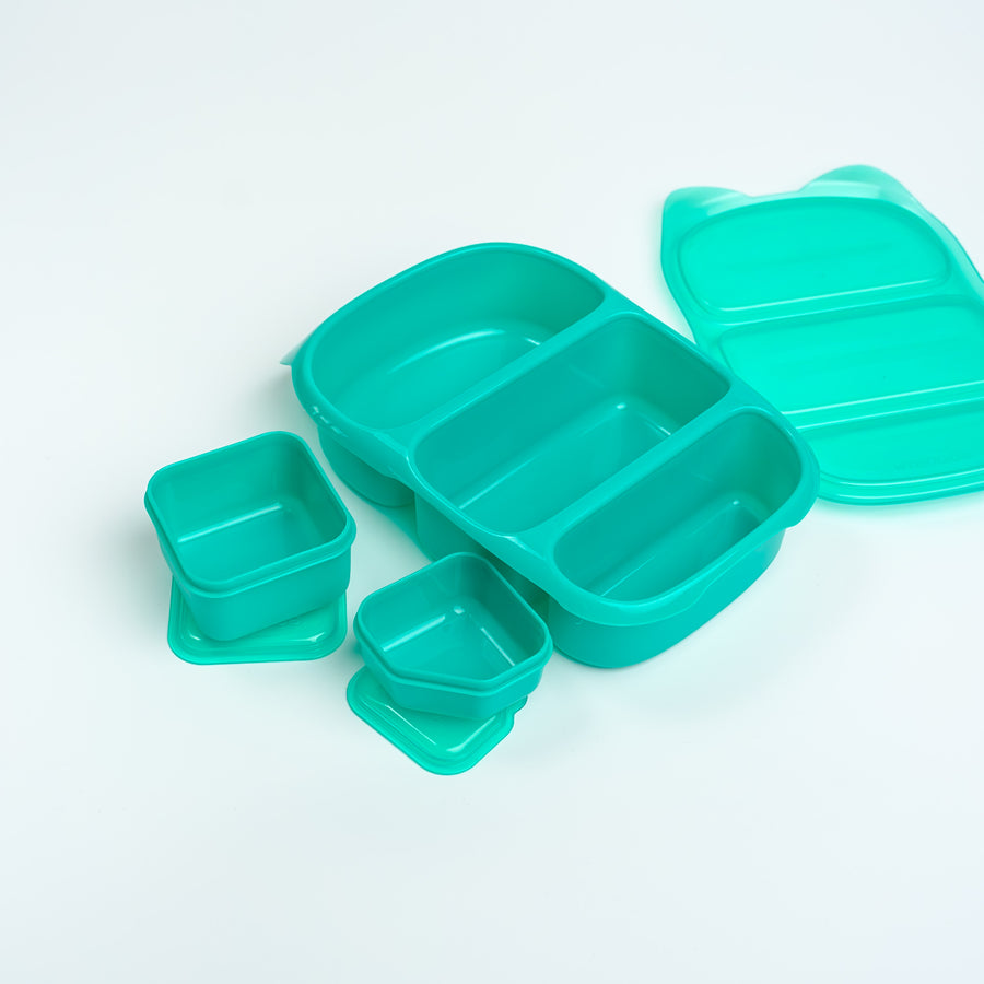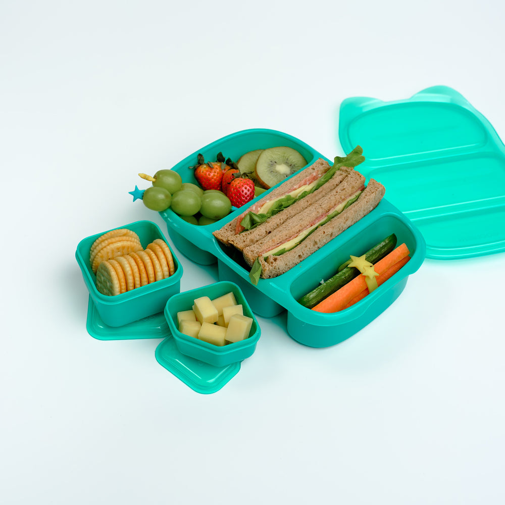 The 3 individually-sealing compartments and single lid of the Goodbyn Bynto allow for easy lunch-making and even easier access to food at lunch time. Better still, the Bynto keeps food separated so sandwiches won't taste like your banana, and fresh fruit won't have crumbs in it! The 2 leakproof dipper containers are great for creating extra compartments in the Bynto, or for packing extra snacks separately. The larger of the dippers holds a full pottle-worth of yoghurt. The smaller container suits dips, hummus, nuts etc