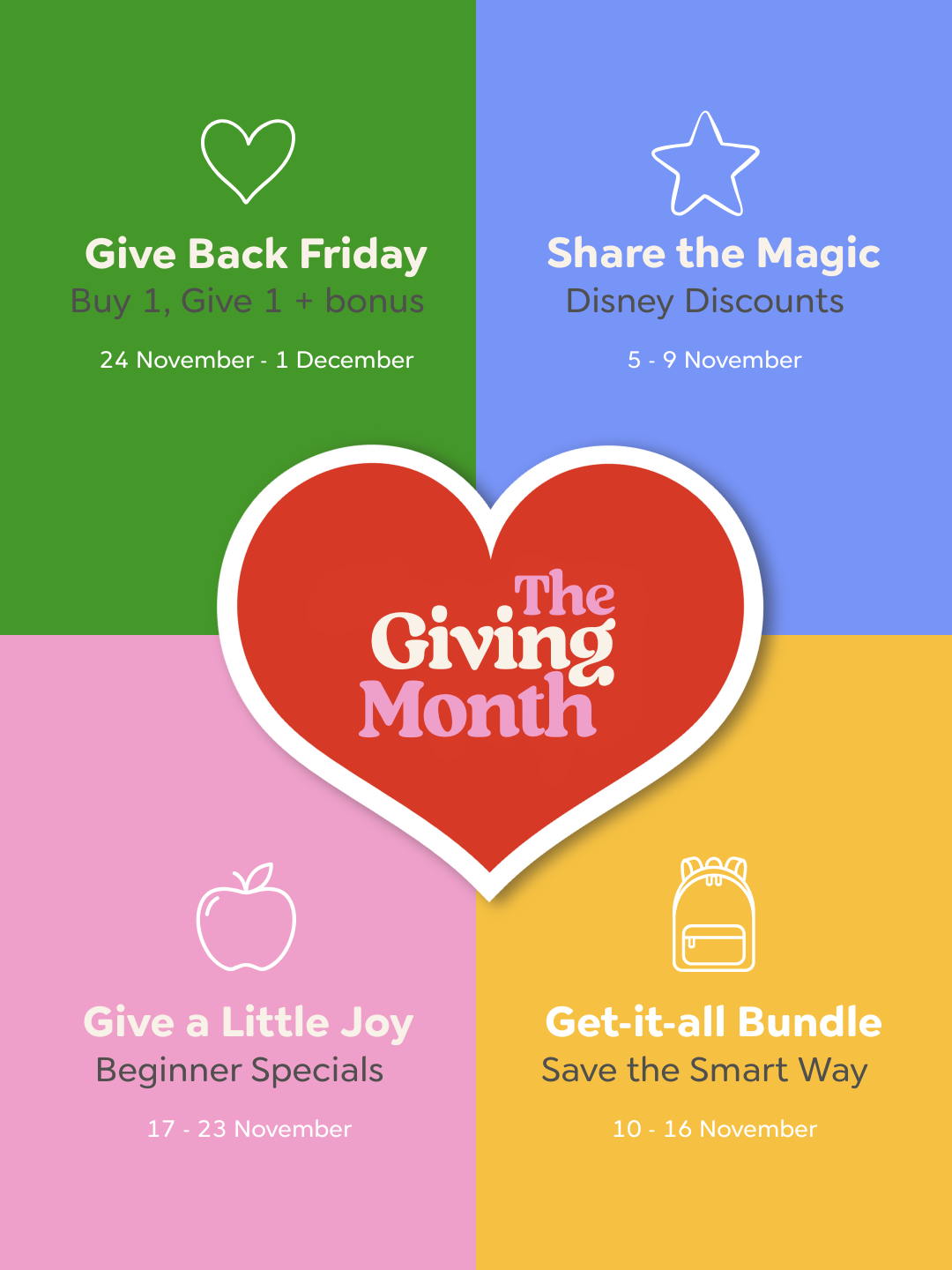 This November, we’re doing things differently. Instead of one big sale weekend, we’re turning the whole month into something that actually matters — The Giving Month.